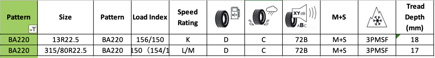 All Position On/off BA220 tire is designed for installation on a driving axle of dump trucks. The rubber has a great adhesion to unpaved road surfaces. Designed for movement on construction plants, barrow pits, and waste dumps. An optimised tread is developed for a lasting lifetime. It also has a protection from stones and self-cleaning from mud.