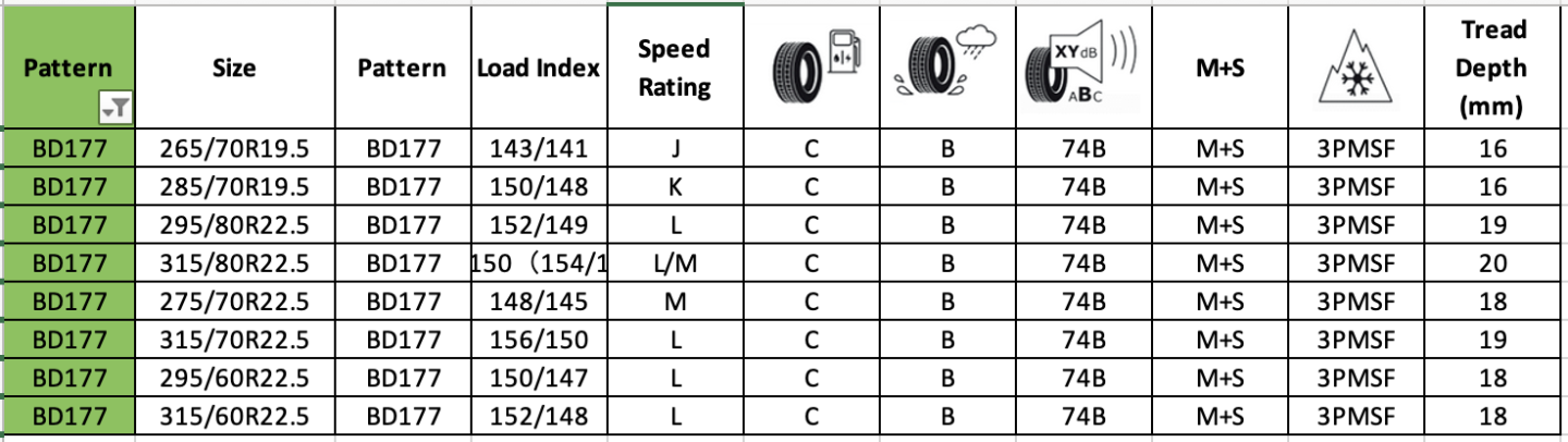 Drive Long Haul BD177 are firm tires, which conform to all up-to-date European standards. The tires can be successfully used not only on goods vehicles, but also on the buses. These are used for installation on driving axles with the purpose of operation on highways. Tread pattern ensures an excellent adhesion to the road surface.